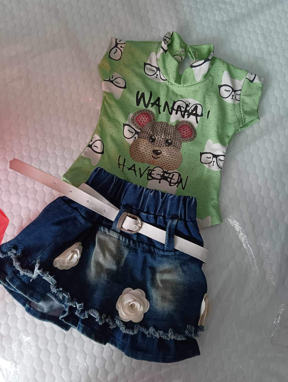 Trendy Jeans Skirt with Printed Tee for Baby Girl